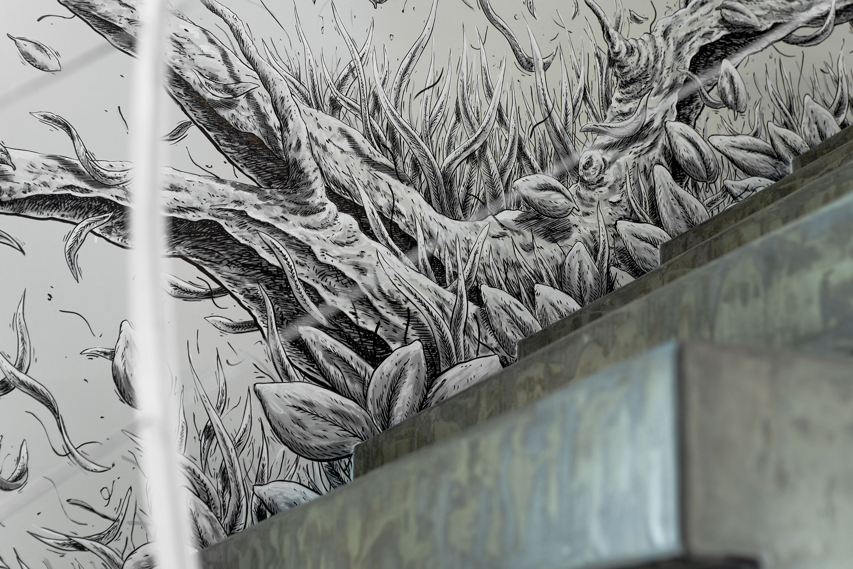 Two inside walls with plants style for GPD Agencies offices in Poznan.