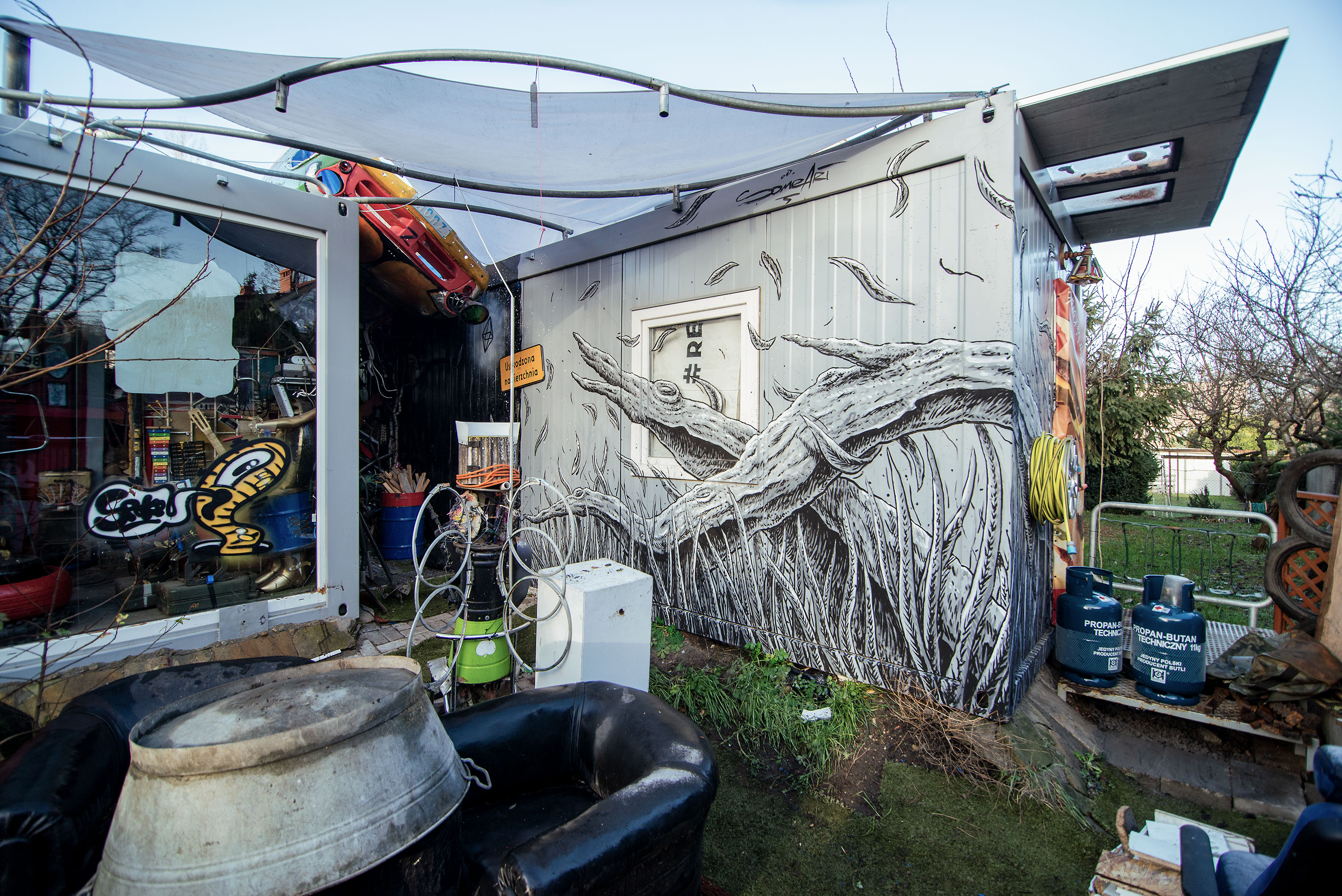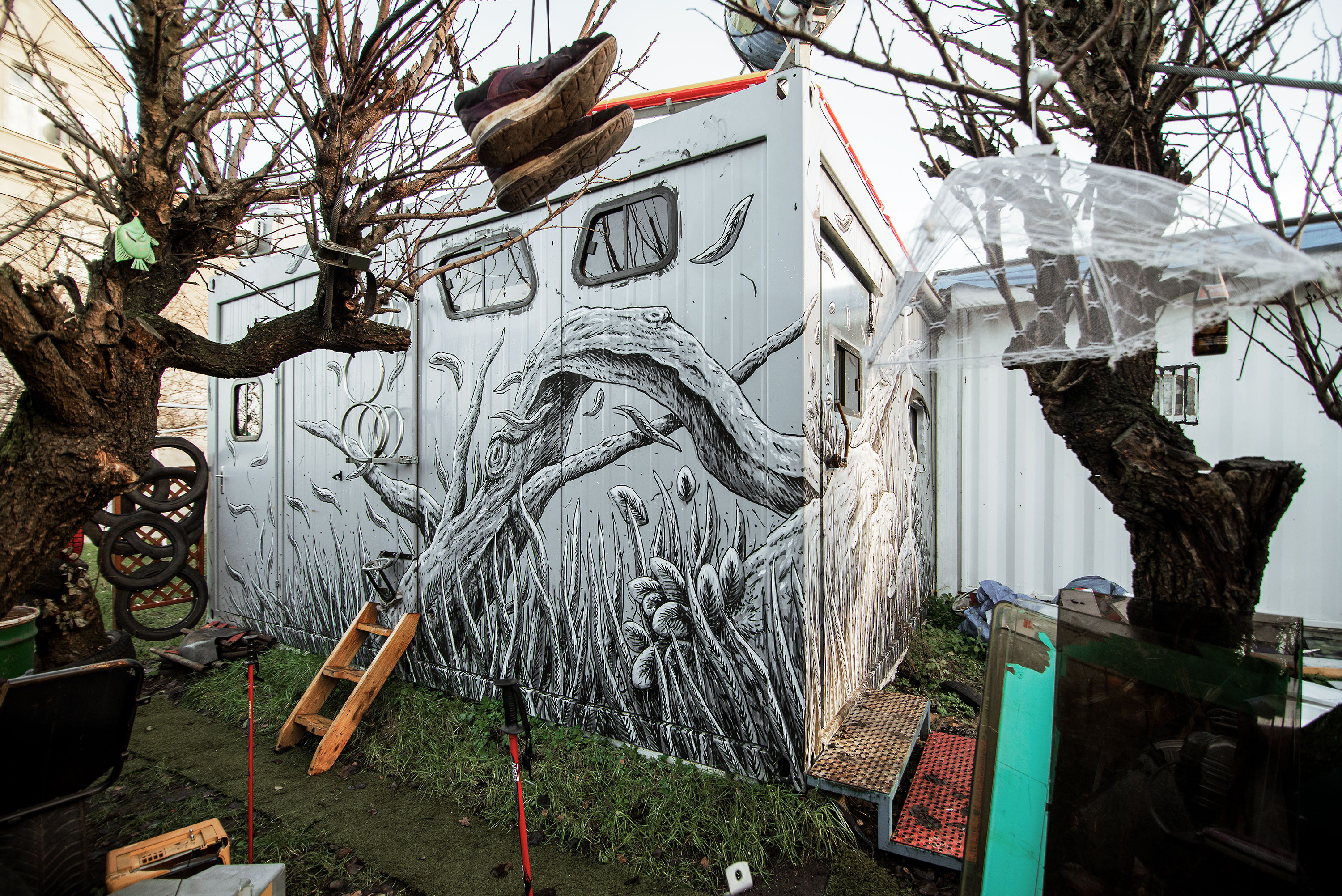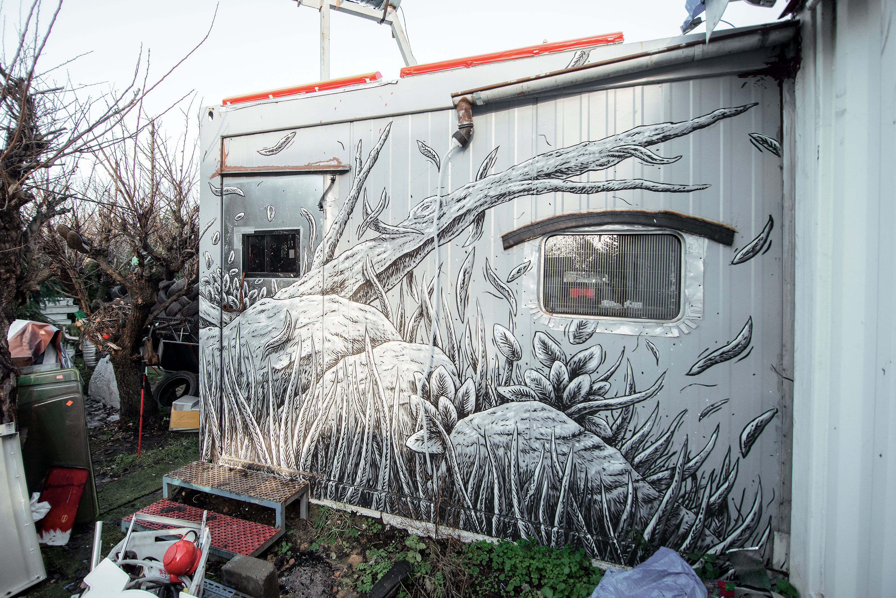 I painted there two outside murals and one in the interior with my Friendly Faces pasteups.